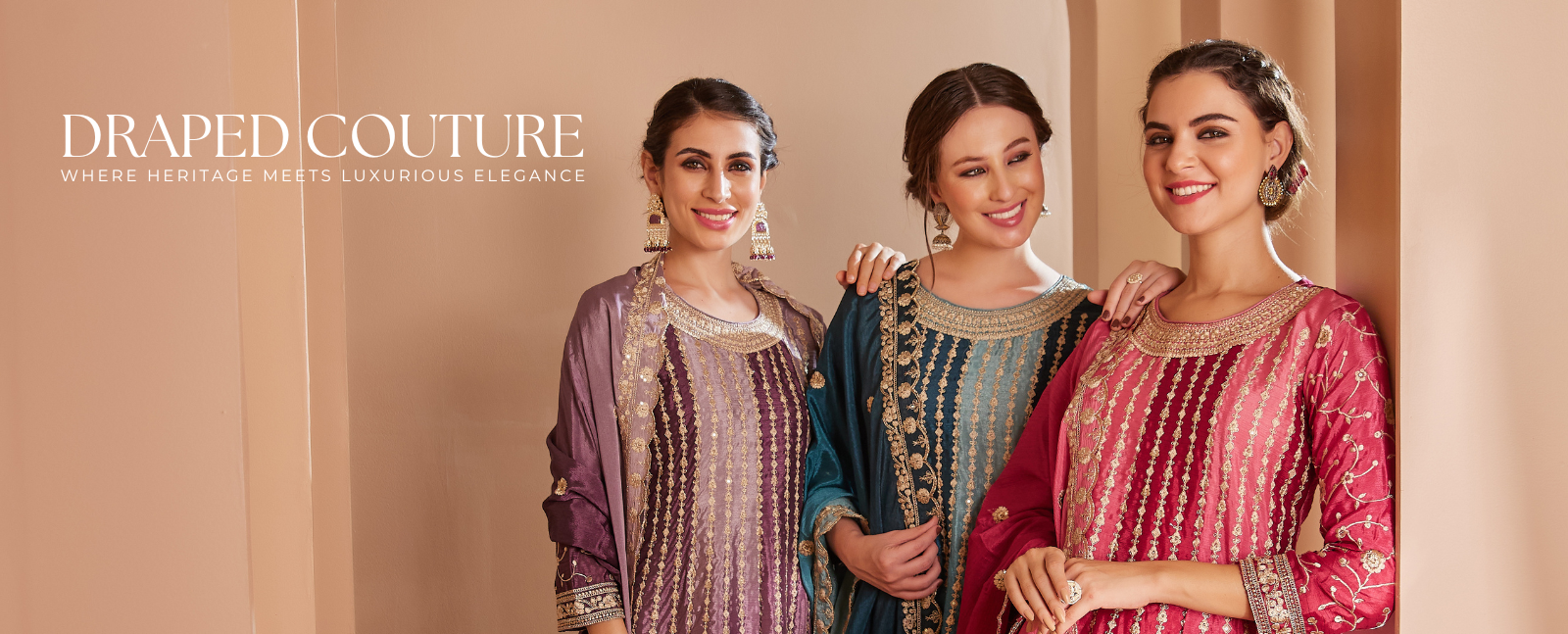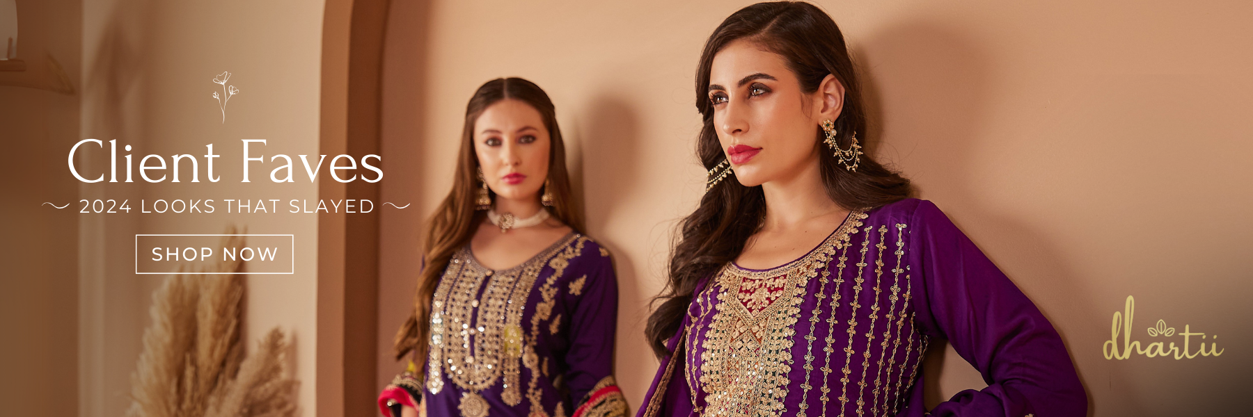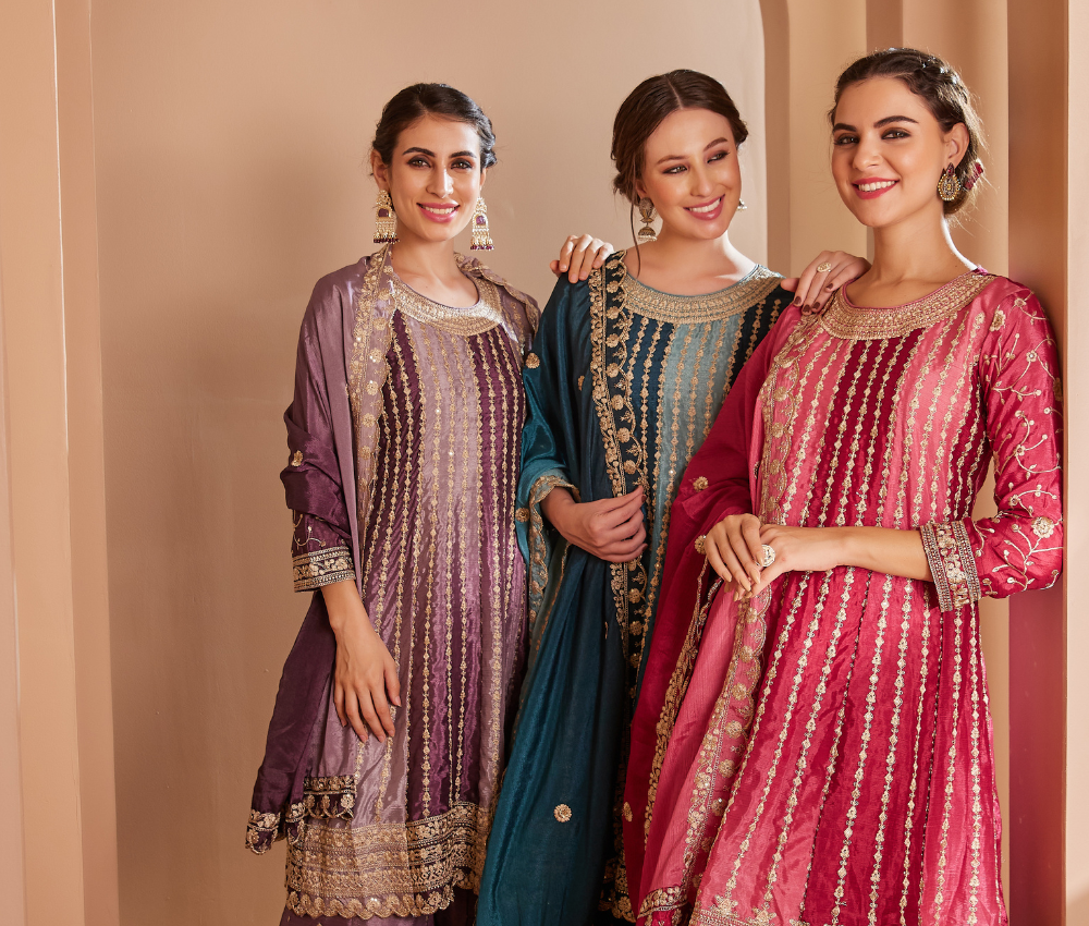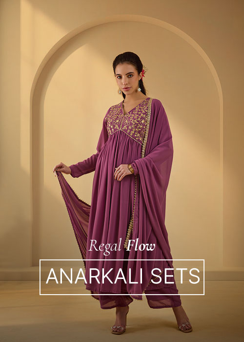 Show product Purple Chinon Fabric Embroidered Suit With Flared Pants & Dupatta - Set Of 3