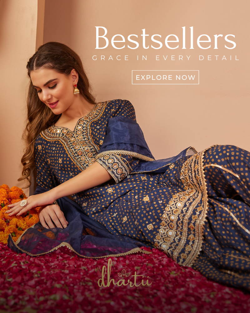 Show product Mustard Printed Suit With Flared Sharara Pants & Dupatta - Set Of 3