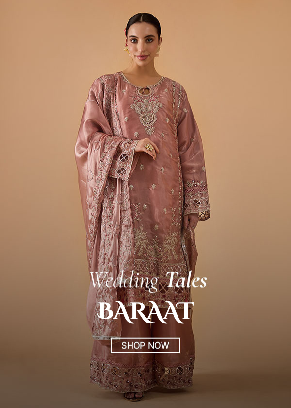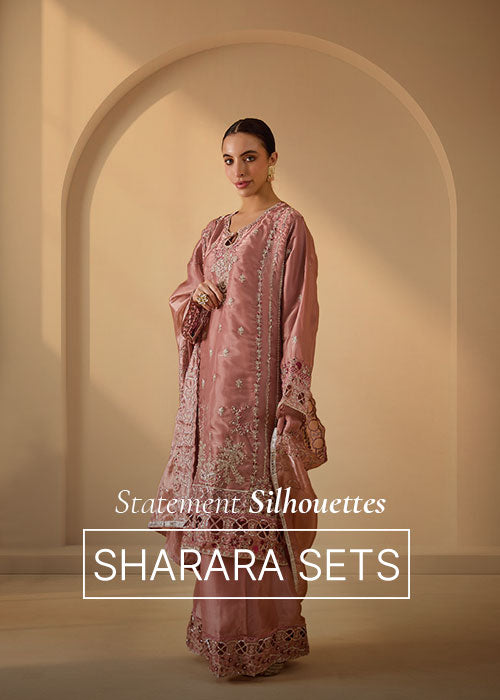 Show product Pink Chinon Fabric Embroidered Suit With Flared Pants & Dupatta - Set Of 3