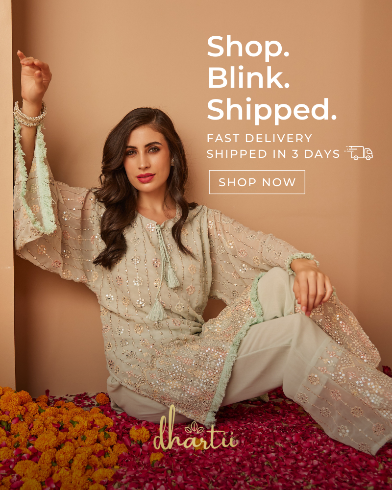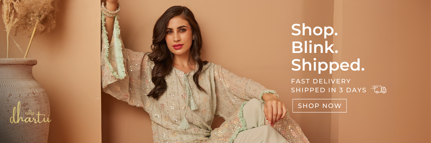 Show product Blue Chinon Fabric Embroidered Suit With Flared Pants & Dupatta - Set Of 3