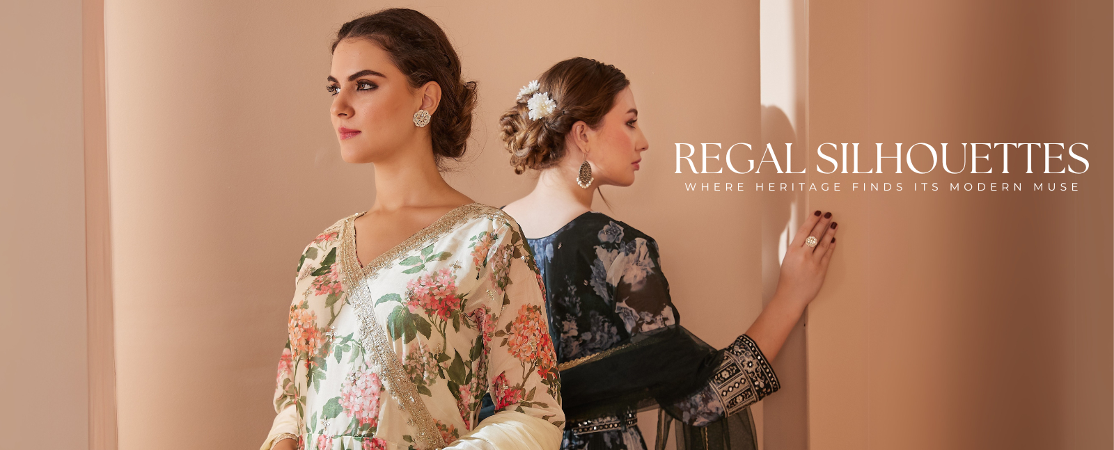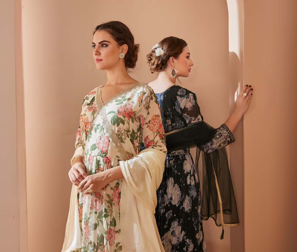 Show product Off White Printed Anarkali Gown Set - Set Of 3