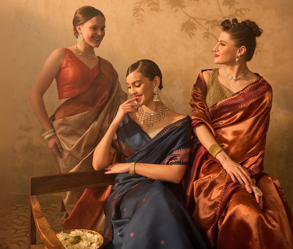 Navy Blue Kanjivaram Silk Saree With Copper Zari Work