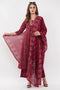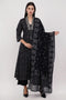 This Black Printed Anarkali Set is crafted from pure cotton, offering comfort with a touch of elegance. The intricate print enhances the flowing Anarkali silhouette, embellished neckline with tassels making it ideal for both casual outings and festive occasions. Breathable and stylish, it’s a versatile addition to any wardrobe. - Printed Anarkali Set - Embroidered Neckline - Fabric- Pure Cotton - Color- Black - Sleeves- 3/4th - Set of 3