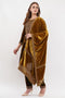 The Black Velvet Suit Set with Pants & Dupatta features rich velvet fabric adorned with intricate coding embroidery work. This elegant set includes a matching dupatta, making it perfect for formal occasions or evening gatherings, offering a blend of luxury and sophistication. - Suit Pants, & Dupatta - Coding Embroidery work - Fabric- Velvet - Color- Black - Sleeves- Full - Set of 3