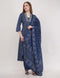 Blue Pure Cotton Printed Cotton Anarkali Set - Set Of 3