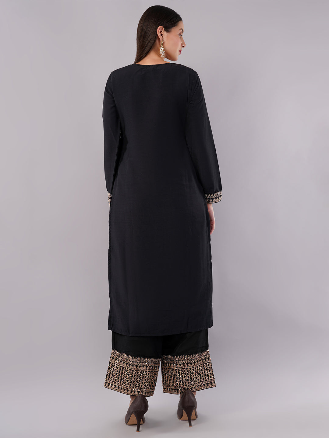 dhartii Festive Stunning Black Embroidered Suit Set with Pallazzo and Dupatta (3 Piece Set)