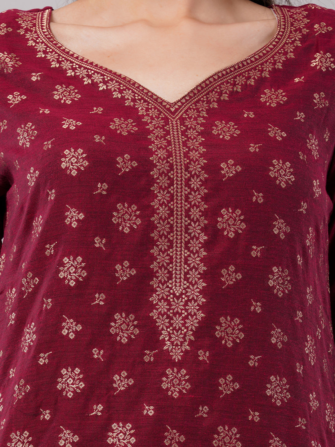 dhartii New Age Lavish Maroon Royal Brocade Suit Set with Dupatta and Pants (3 Piece Set)