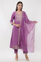 Lavender Silk Straight Suit With Dupatta - Set Of 3