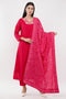 This Purple Anarkali Set is crafted from Viscose, offering comfort with a touch of elegance. The printed Dupatta enhances the flowing Anarkali silhouette, embroidered neckline making it ideal for both casual outings. Breathable and stylish, it’s a versatile addition to any wardrobe. - Anarkali Set - Embroidered Neckline - Fabric- Viscose - Color- Purple - Sleeves- Full - Set of 3