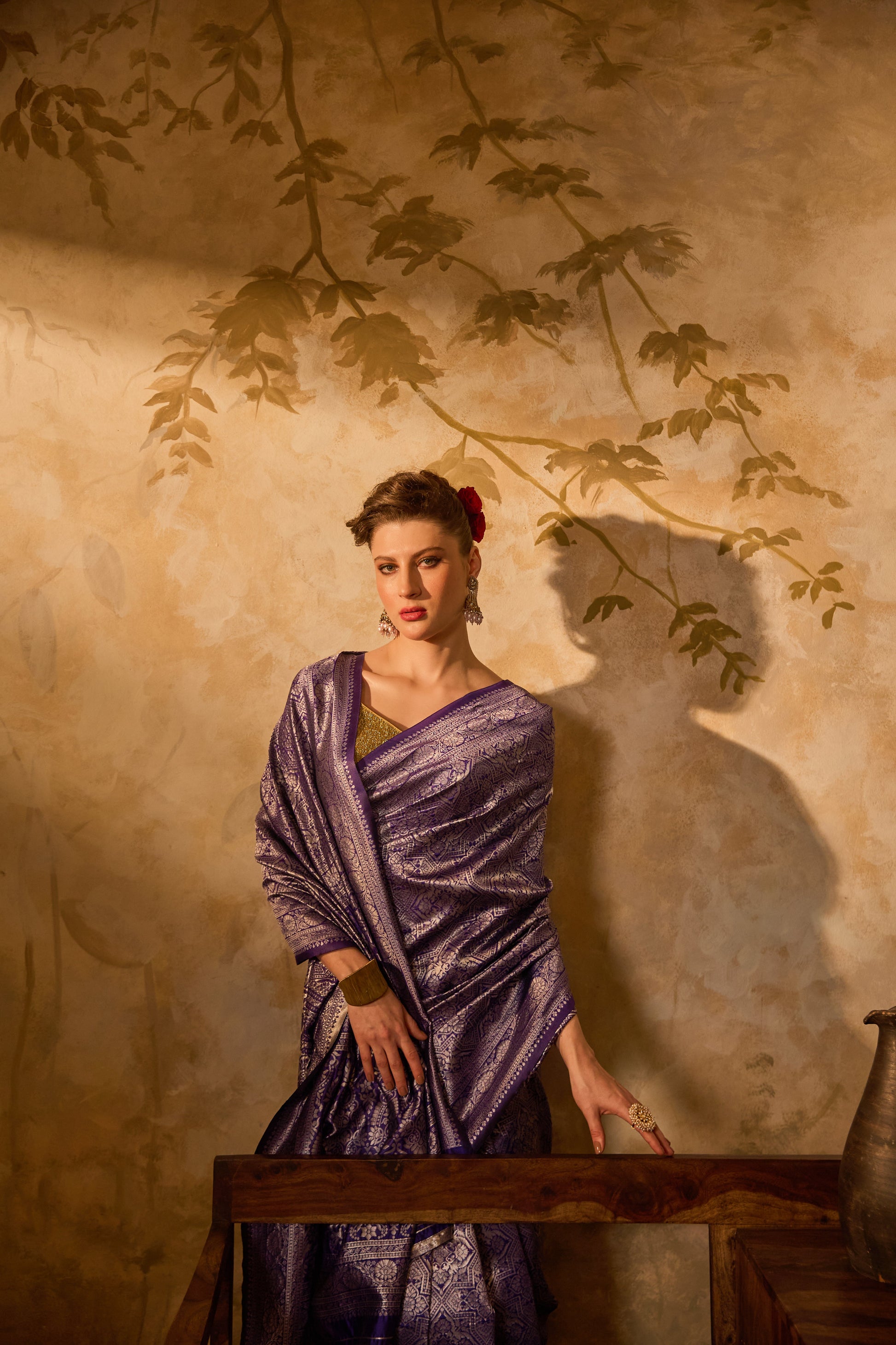 Royal Purple Banarasi Silk Saree With Intricate Silver Zari Motifs